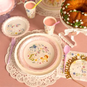 • Plokščia kartoninė lėkštė Ø 23 cm Stebuklingi Vienaragiai