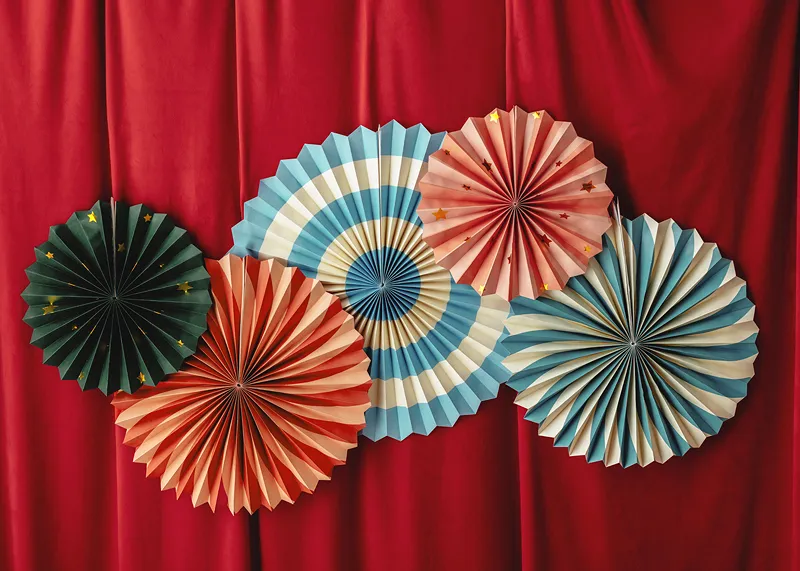 Dekoratyvinės cirko vėduoklės, spalvų mišinys, surinktų roželių skersmuo apie 26–43 cm