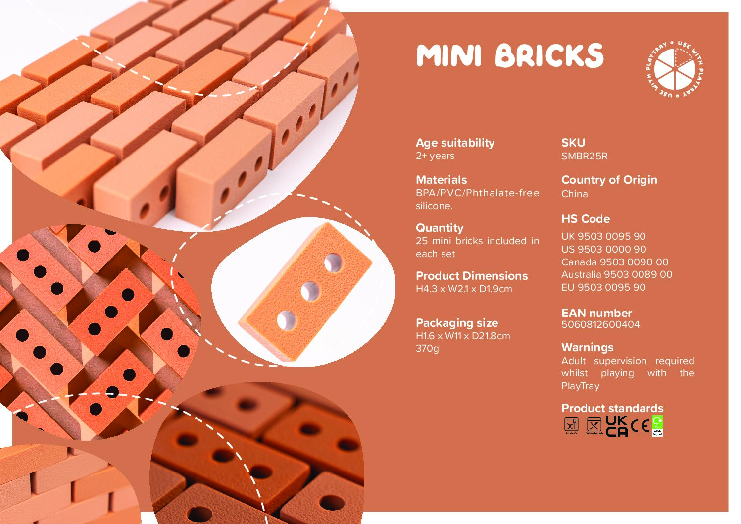 Šios išradingos „Inspire My Play“ mini kaladėlės sukurtos suteikti tikrovišką ir įdomią konstravimo patirtį. Pagamintos iš 100 % maistinio silikono, kaladėlės atrodo lygiai kaip tikros. Rinkinyje yra 25 kaladėlės, tad jūsų mažasis statybininkas praleis valandas kurdamas ir konstruodamas žaidimų scenas bei miniatiūrines statybvietes, lavindamas savo vaizduotę dirbdamas. Kaladėlės yra lengvai valomos ir patvarios, o tai reiškia, kad jas galima plauti ir pakartotinai naudoti begaliniam įdomiam žaidimui.