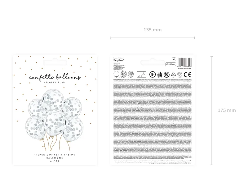 Konfeti balionai – apskritimai, 30 cm, sidabriniai