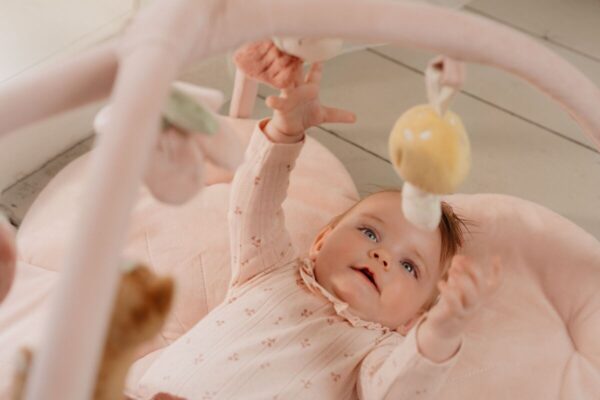 Tiek daug ką pamatyti, paliesti ir išgirsti! Kiekviena diena – nuotykis su šiuo gėlės formos žaidimų kilimėliu. Švelnios rausvos spalvos atspalvis turi dvi velveto arkas su penkiais skirtingais kabančiais minkštais žaisliukais iš „Fėjų sodo“ kolekcijos. Mažas elnias, paukštelis, gėlė, grybas ir braškė padės lavinti sensorinius įgūdžius ir akių bei rankų koordinaciją. ĮSPĖJIMAS! Pritvirtinkite šį žaislą vaikui nepasiekiamoje vietoje. Kad išvengtumėte galimų sužalojimų įsipainiojus, nuimkite jį, kai vaikas pradeda bandyti atsistoti ant rankų ir kelių ropojimo padėtyje. Reikalingas suaugusiojo surinkimas. Išsaugokite šią informaciją.
