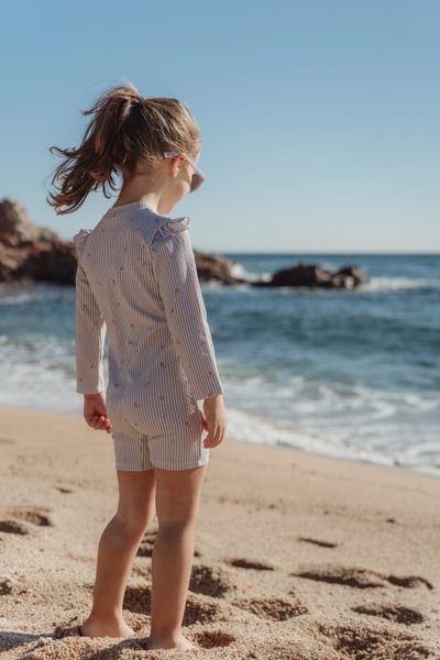 Saulė ant veido, pirštai smėlyje ir nesibaigiantys taškymaisi – alyvinis „Little Dutch“ ilgarankovis maudymosi kostiumėlis „Dreamy Stripes“ – tobulas palydovas saulėtai vasaros dienai. Švelnios juostelės kartu su mažytėmis gėlytėmis sukuria mielą ir linksmą įvaizdį, puikiai tinkantį saulėtoms akimirkoms vandenyje ir prie vandens. Pagamintas iš patogaus vaflinės tekstūros audinio, šis maudymosi kostiumėlis pasižymi žaismingais raukiniais ant pečių. Ilgos rankovės ir UPF 40+ apsauga padeda apsaugoti jūsų vaiką nuo saulės. Ilgas užtrauktukas leidžia lengvai apsirengti ir nusirengti – net po ilgos dienos žaidžiant vandenyje. Nepamirškite naudoti apsaugos nuo saulės priemonės, kad apsaugotumėte vaiko odą. Maudymosi kostiumėlis pagamintas iš UV spindulius saugančio perdirbto nailono ir yra 62/68, 74/80, 86/92 ir 98/104 dydžių. Nepamirškite paplūdimyje visada naudoti apsaugos nuo saulės priemonės!