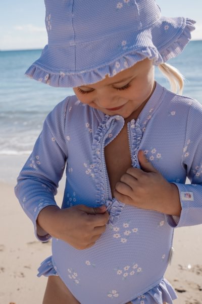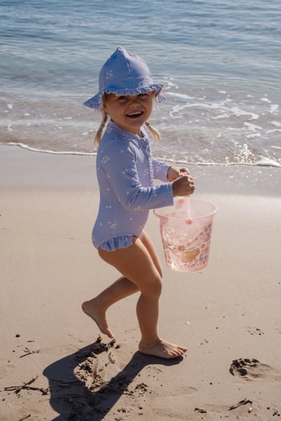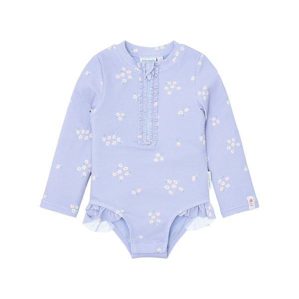 Svajingos taškymosi pramogos su „Dreamy Lavender“. Švelnūs levandų atspalviai, mažytės gėlytės ir nesibaigiantys žaidimai vandenyje – šis „Little Dutch“ alyvinės spalvos maudymosi kostiumėlis „Dreamy Lavender“ sukurtas mažiesiems svajokliams, nekantraujantiems patirti vasarą. Ilgos rankovės suteikia UPF 40+ apsaugą nuo saulės. Subtilūs raukiniai ant pečių suteikia žaismingumo, o spaudės nugaroje leidžia lengvai apsirengti ir nusirengti. Nėra užtrauktuko, todėl šlapi plaukai nesivelia. Mažiausių dydžių – 62/68 ir 74/80 – maudymosi kostiumėlio tarpkojyje yra spaudės, leidžiančios pakeisti sauskelnes nenuimant viso maudymosi kostiumėlio. Ši funkcija negalima 86/92 ir 98/104 dydžių maudymosi kostiumėliams. Nepamirškite naudoti apsaugos nuo saulės priemonių, kad apsaugotumėte vaiko odą. Galima įsigyti 62/68, 74/80, 86/92 ir 98/104 dydžių.