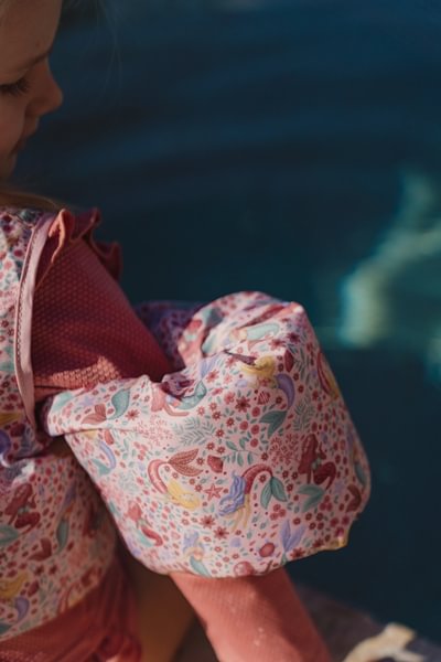 Rožinė „Little Dutch Dreamy Mermaid“ maudymosi liemenė suteiks jūsų mažyliui pasitikėjimo savimi vandenyje. Švelniai rožinis atspalvis ir mielas undinėlės raštas daro šią maudymosi liemenės ir rankovės derinį ne tik praktišką, bet ir labai smagiai dėvimą. Reguliuojama sagtis gale užtikrina gerą prigludimą, o minkštas ir patvarus poliesteris yra malonus odai. Tinka vaikams, sveriantiems 15–30 kg (rekomenduojamas amžius: 3–6 metai). Idealiai tinka saugiems žaidimams vandenyje, visada prižiūrint suaugusiesiems. Linksmas ir saugus maudymosi kompanionas mažiesiems vandens entuziastams!