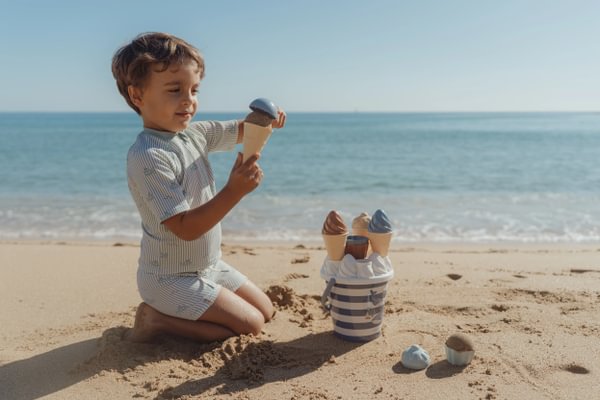 Smėlio vakarėlis mažiesiems ledų mėgėjams. Gaminkite, formuokite ir patiekite skaniausius smėlio ledus su „Little Dutch“ mėlynu „Ocean World“ rinkiniu. Šis linksmas rinkinys siūlo nesibaigiančias išradingo žaidimo pramogas paplūdimyje, sode ar net vonioje. 14 dalių rinkinį sudaro spalvingos ledų formelės, patogus samtelis ir daugybė kitų priedų, padėsiančių sukurti puikius smėlio skanėstus. Pagamintas iš tvirtos ir patvarios medžiagos ir skirtas mažoms rankytėms. Kibirėlio skersmuo yra 17 cm, o rinkinys supakuotas tinkliniame maišelyje. Tinka vaikams nuo 18 mėnesių. Idealiai tinka mažiesiems svajotojams, kurie mėgsta jūrą ir smėlio ledus.