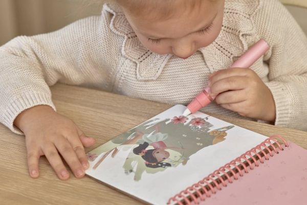 Leiskite savo vaikui žavėtis šia stebuklinga vandens spalvinimo knygele. Pripildykite specialų rašiklį vandens ir kartu atraskite, kaip balti puslapiai virsta spalvingais, mielais vaizdais. Tvirtos kortelės ir patogus segtuvas daro knygelę tobulą mažoms rankytėms. Idealiai tinka kūrybingam žaidimui, galima naudoti vėl ir vėl.