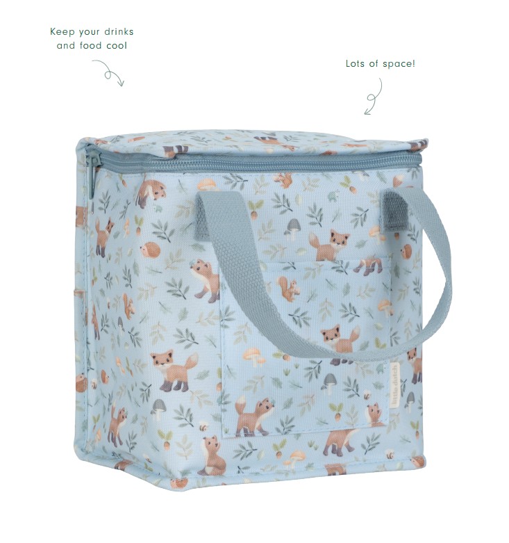 Šis mielas Forest Friends dizaino šaltkrepšis pagamintas iš ypač tvirto ir patvaraus audinio. Termo maišelio vidus yra izoliuotas, kad užkandžiai ir gėrimai būtų vėsūs. Puikiai tinka pietums mokykloje ar kelionėje! Yra pakankamai vietos priešpiečių dėžutei, vaisiams ir buteliukui ar gėrimų pakuotei. Rankenos palengvina šaltkrepšio nešiojimą vaikui.