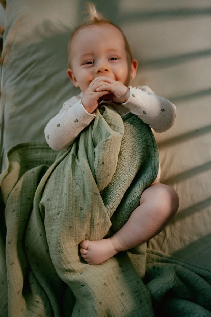Little Dutch vaikiškos lovelės megztas pledas „Pure Sage“ 110×140 cm