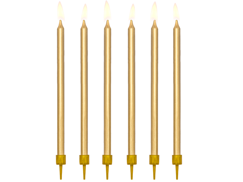 Lygios gimtadienio žvakės, auksinės, 12,5 cm
