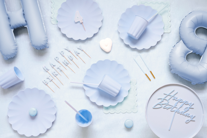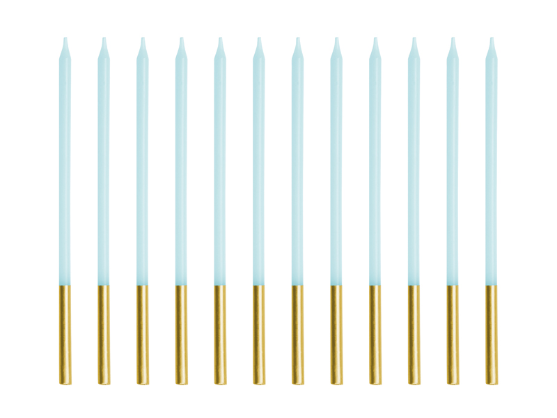 Paprastos gimtadienio žvakės šviesiai mėlynos spalvos, maždaug 14 cm aukščio. Rinkinyje yra 12 žvakių.
