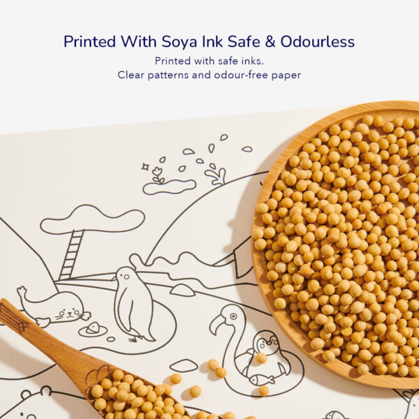 4 metrai spalvinimo paveikslėlių! Spalvink, klijuok ir nulupk be pėdsakų – piešti dabar galima visur! Ant sienos, ant grindų ar net ant stalo, nes spalvinimo lapas karpomas ir lengvai klijuojamas ant įvairiausių paviršių – pasirink patogią vietą ir kibk į kūrybą. Daug skirtingų piešinių iliustracijų ir edukacinių užduočių vaikams. Storas popierius, pro kurį neprasigeria dažymo priemonės. Dažai iš sojų pupelių, bekvapiai ir saugūs naudojimui.