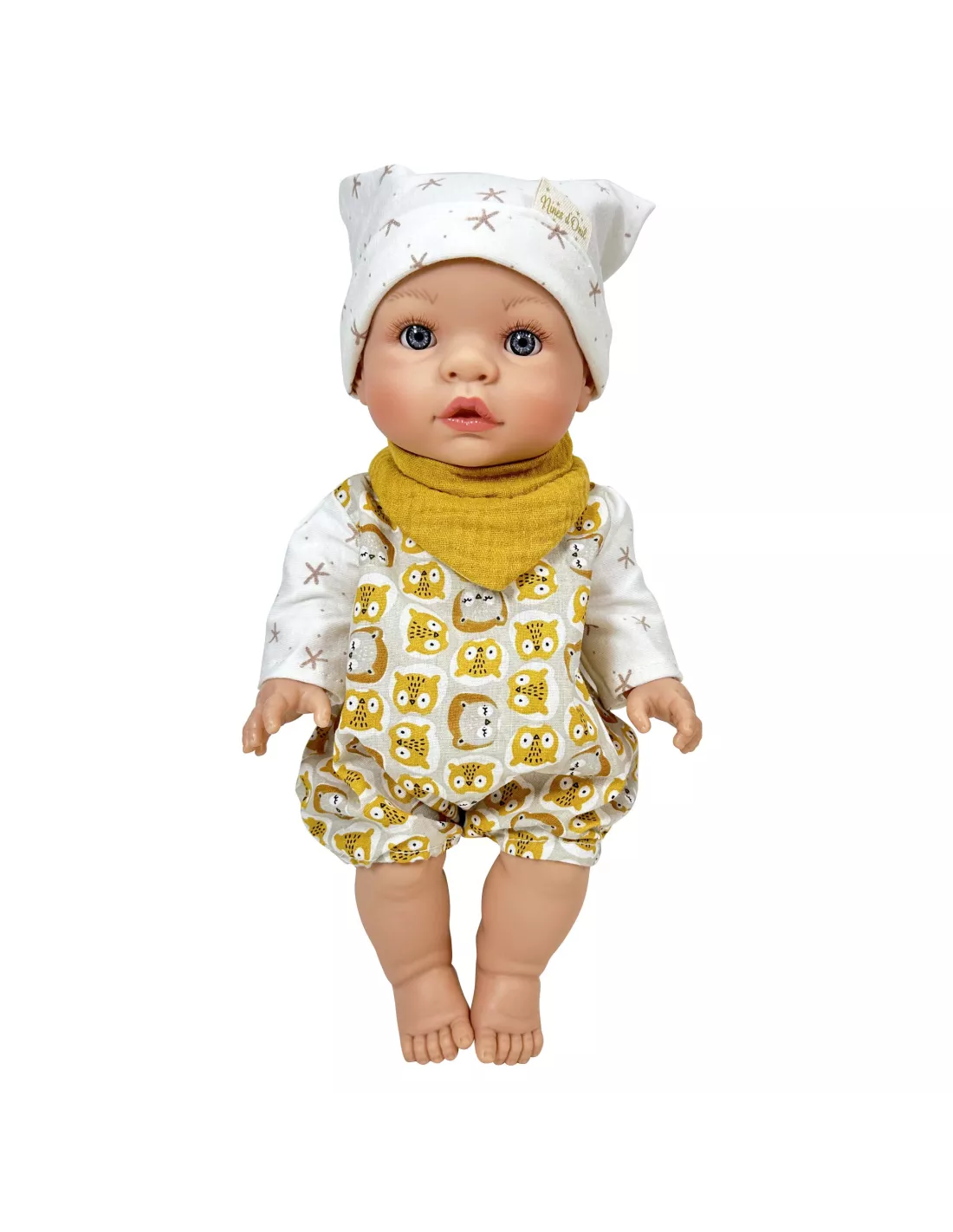 Visada besišypsantis ir išdykęs, šis žavus berniukas apsirengęs minkštu medvilniniu drabužiu, nusagstytu laimingomis pelėdomis – pasiruošęs skleisti gerą nuotaiką ir plačiai nusišypsoti.