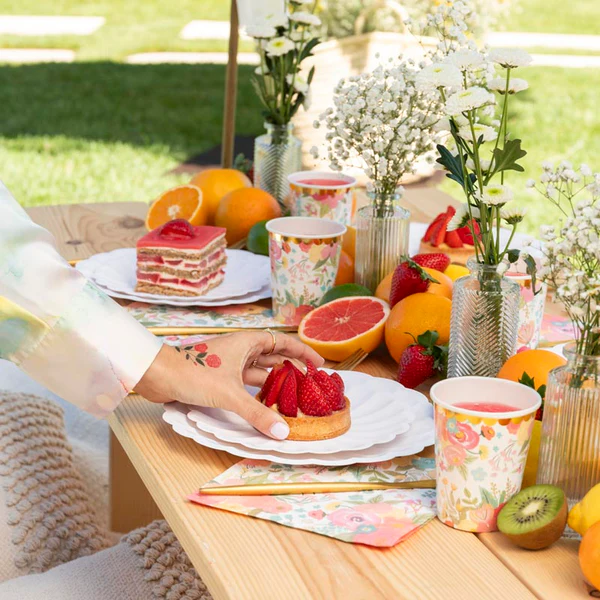 Papuoškite savo šventes mūsų žavingais gėlių raštais puoštais popieriniais stalo serviravimais, kur kiekviena lėkštė tampa šedevru! 🌸