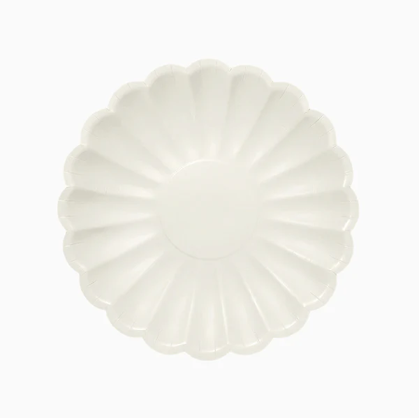 8 vnt. plokščių apvalių kartoninių desertinių lėkščių, Ø 23 cm, baltos spalvos, pakuotėje .