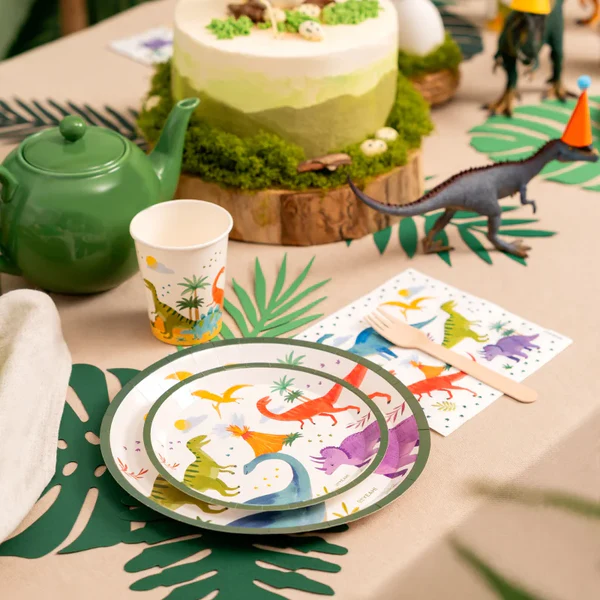Derinkite juos su deserto lėkštėmis, stiklinėmis, servetėlėmis ir kitais „Baby Dino“ kolekcijos gaminiais, kad sukurtumėte išbaigtą priešistorinės magijos kupiną dekoraciją. 🦕🎉