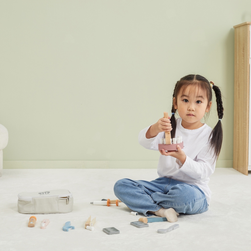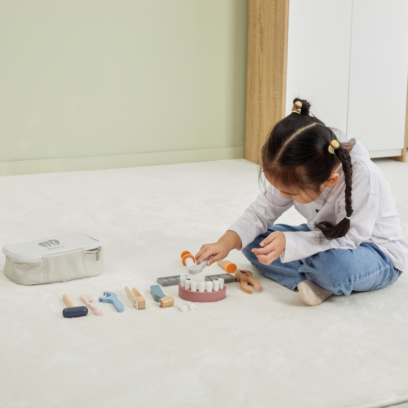 Medinis „ Viga“ prekės ženklo „PolarB“ serijos odontologo rinkinys yra vienas iš tų žaislų, kurie, žaidžiant vaidmenis, padės vaikui atsikratyti baimės ir įgyti pasitikėjimo savimi stresinėse situacijose, kurios jo gali laukti ateityje. Apsilankymas pas odontologą gali būti lengvesnis ir malonesnis, kai išnyks jūsų baimė dėl dantų įrangos. Į komplektą įeina patogus krepšys su medinių žaislų rinkiniu, kurį sudaro: dantų rinkinys (įskaitant du papildomus), grąžtas, danties ištraukimo replės, dantų šepetėlis, dantų siūlas, pincetas, rentgeno nuotraukos, veidrodis, plaktukas ir dantų pastos tūbelė.