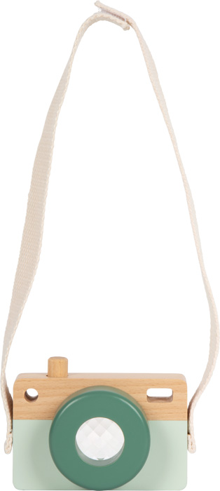 Šis mielas žaislinis fotoaparatas, pagamintas iš 100 % FSC® sertifikuotos medienos, pradžiugins mažuosius nuotykių ieškotojus puikiu kaleidoskopo efektu, judančiu užrakto mygtuku ir praktiška kilpa. Be baterijų, jis kviečia vaikus pasinerti į mažųjų fotografų vaidmenį kūrybiniame vaidmenų žaidime ir atrasti pasaulį naujomis akimis. Idealiai tinka lavinti smulkiąją motoriką, formų atpažinimą ir vaizduotę.