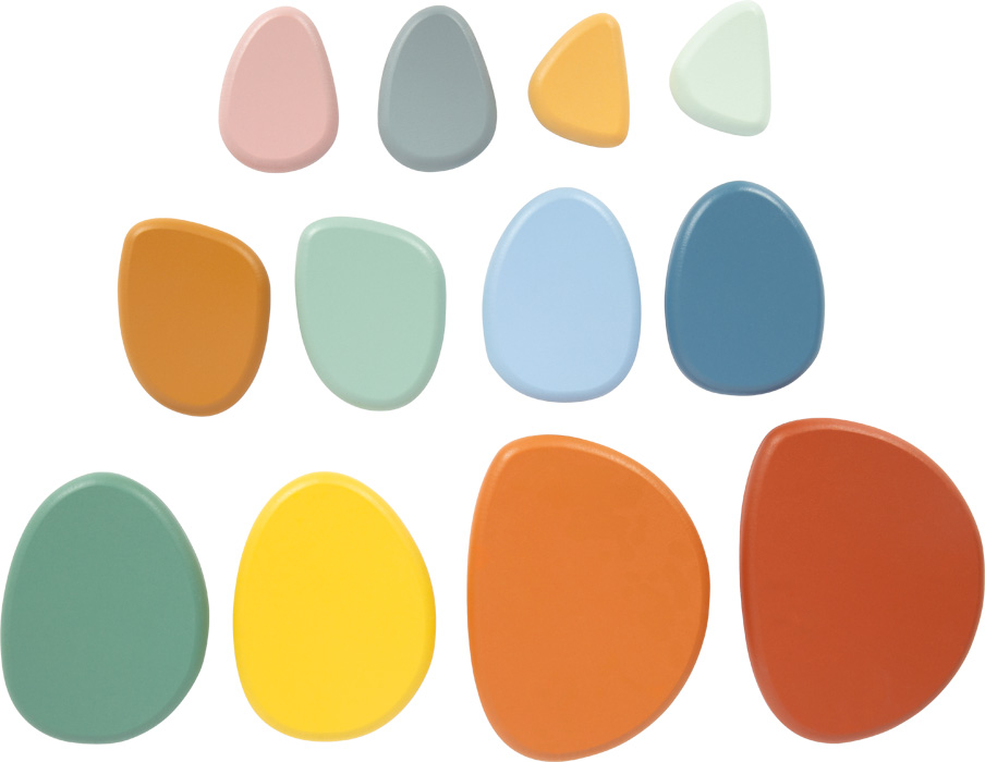 • 12 balansuojančių akmenų, pagamintų iš FSC® 100 % sertifikuotos medienos, švelnių, modernių spalvų