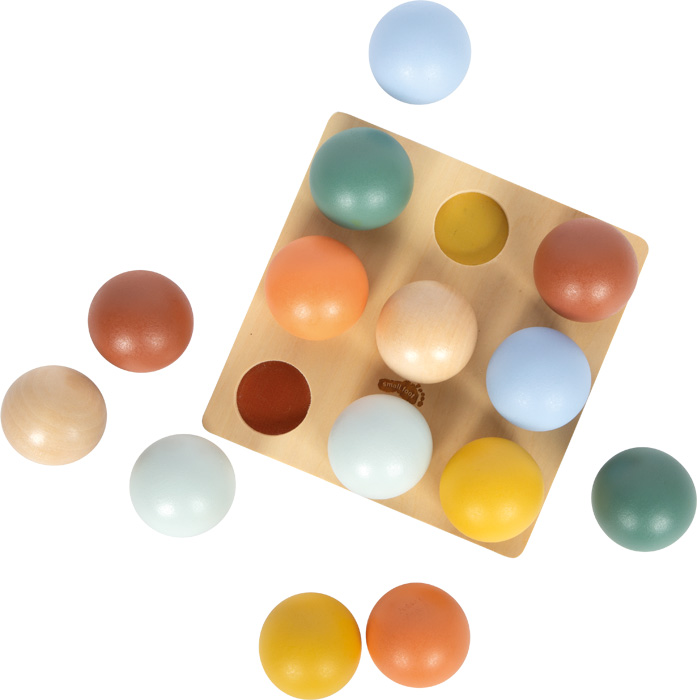 Kraunant, rūšiuojant ir atrandant spalvas – su Montessori rūšiavimo žaidimu, kuriame naudojami 100 % FSC® sertifikuoti mediniai kamuoliukai, vaikai gali žaismingai lavinti savo miklumą ir kūrybiškumą. Rinkinį sudaro stabili medinė lenta su devyniomis derančiomis spalvų įdubomis ir 14 švelnių, švelnių spalvų medinių kamuoliukų. Konstruojant kamuoliukų piramidę, rūšiuojant pagal spalvas ar eksperimentuojant su savo pakeitimais, tikslingai lavinami smulkioji motorika, regimasis suvokimas ir rankų bei akių koordinacija. Universalus Montessori lavinamasis žaislas, skatinantis vaikus išbandyti ir kūrybiškai mąstyti.