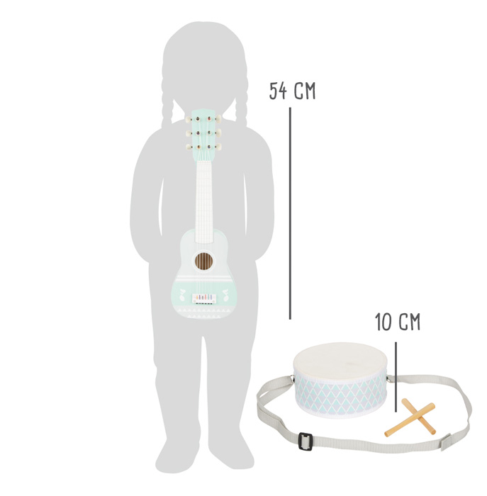 Šis subtilių pastelinių spalvų muzikos instrumentų rinkinys, kurį sudaro gitara, ksilofonas ir būgnas, suteiks įvairiausių muzikinių pramogų. Trys patraukliai suprojektuoti instrumentai ne tik pavers vaikų kambarį koncertų sale, bet ir pritrauks visų žvilgsnius! Su natomis gitarai ir ksilofonui! Su