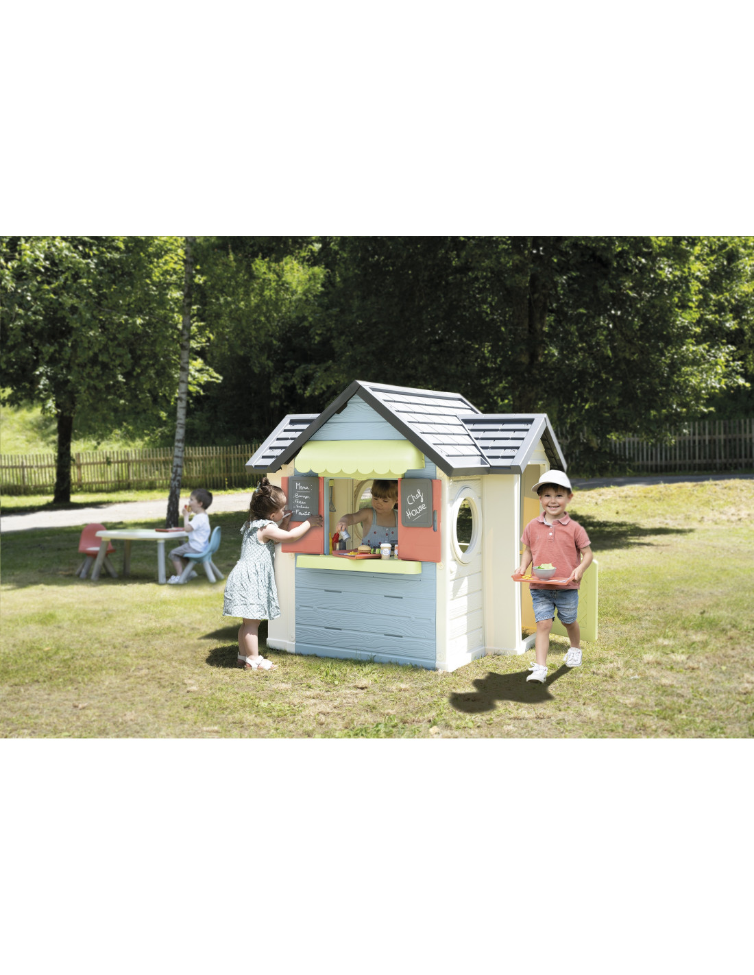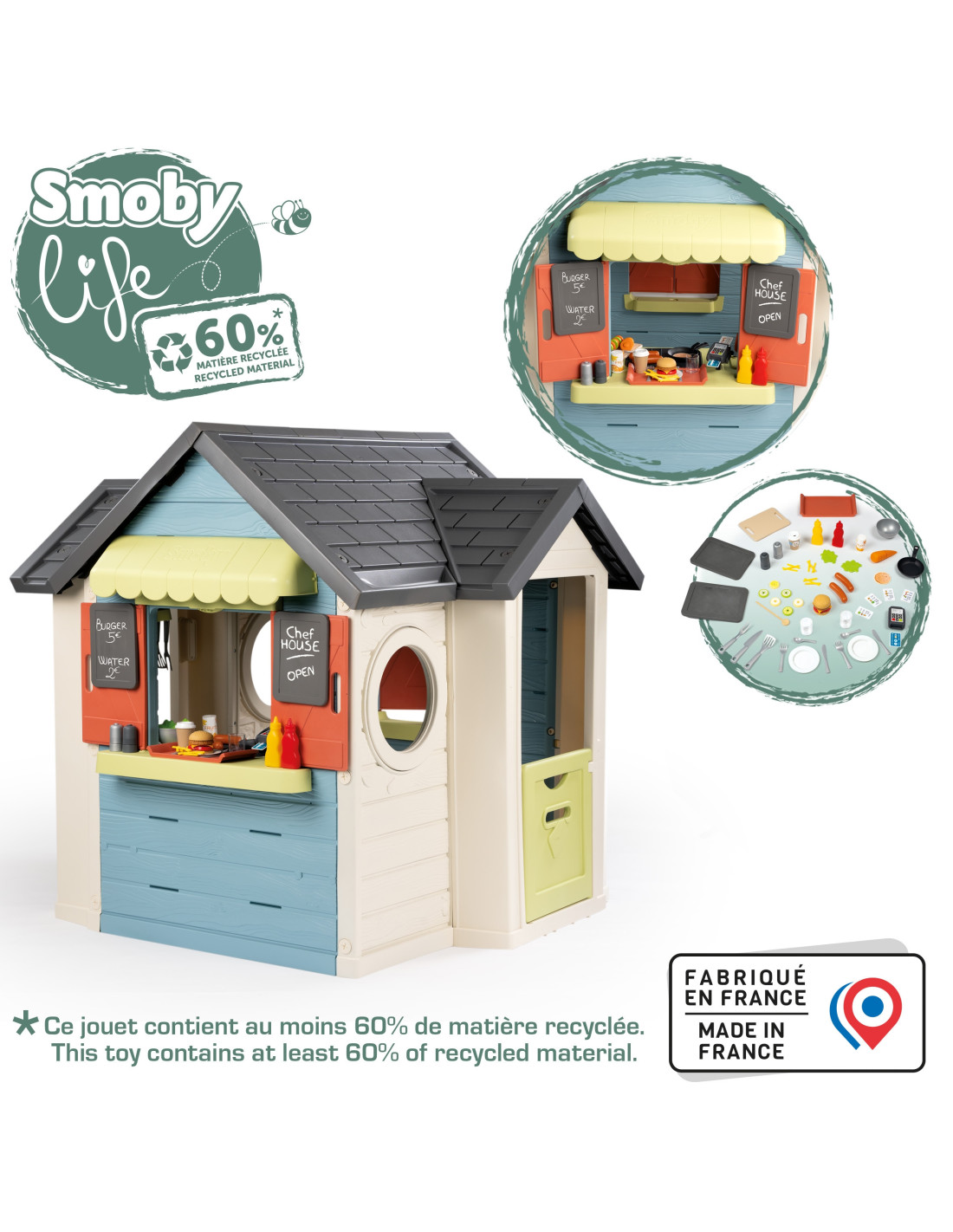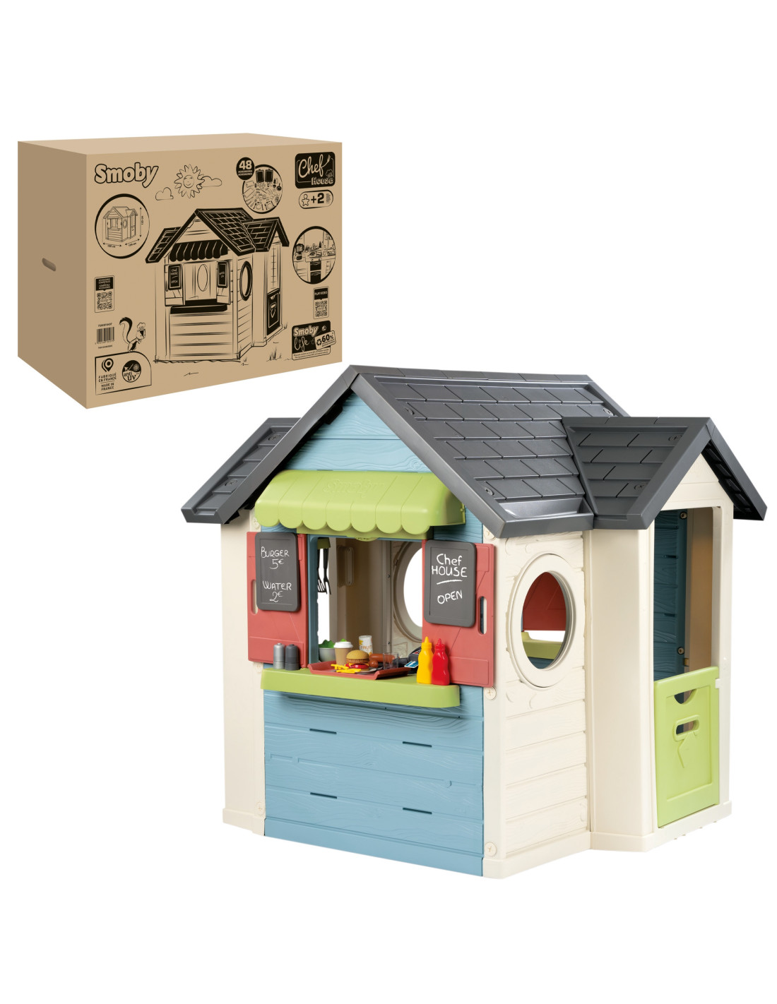 „Smoby Chef’s Cottage“ – tai unikalus žaislas, apjungiantis klasikinio sodo namelio ir pilnavertės restorano virtuvės funkcijas. Puikiai tinka jauniems maisto gaminimo entuziastams, norintiems lavinti savo kulinarinius įgūdžius sode, sukuriant savo lauko restoraną. Puikiai tinka žaisti vienam arba su draugais, skatina kūrybiškumą ir bendradarbiavimą.