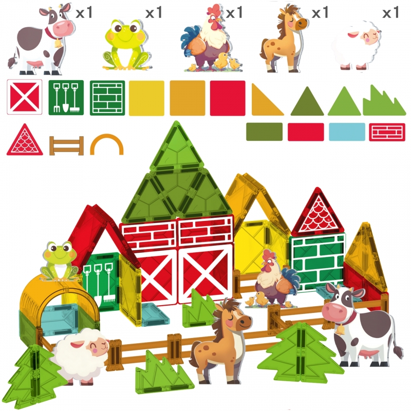 Šis „Woopie“ magnetinių kaladėlių rinkinys  yra unikalus žaislas, leidžiantis vaikams susikurti savo ūkį. Vaikai gali statyti tvartus, gyvūnų aptvarus, silosus ir kitus ūkio pastatus, eksperimentuodami su skirtingomis konfigūracijomis. Magnetinės jungtys leidžia lengvai ir smagiai kurti savo ūkį, o kiekvienas statinys žaidimo metu išlieka stabilus.