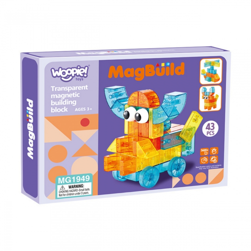 Magiški, skaidrūs „ Woopie “ magnetiniai kaladėlės nukelia vaikus į spalvų, šviesos ir judesio kupiną konstravimo pasaulį – nuo smagių transporto priemonių ir gyvūnų iki išradingų konstrukcijų ir arkinių bėgių, kurie patys surenkami paslėptų magnetų ir lengvų, glotnių detalių, patogių mažoms rankytėms.
